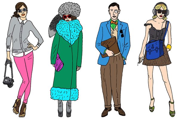 The Cut Blog asked illustrator Peter Arkle to sketch ten of the likeliest people you will find at Fashion Week and here is what he came up with.