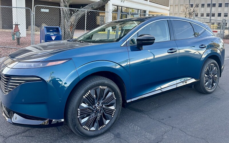 First, let’s talk about presence. In Aurora Blue, the Murano Platinum AWD looks fantastic on the road. The color highlights its sculpted lines and modern styling, giving it a refined yet athletic stance that stands out in a crowded small SUV segment.