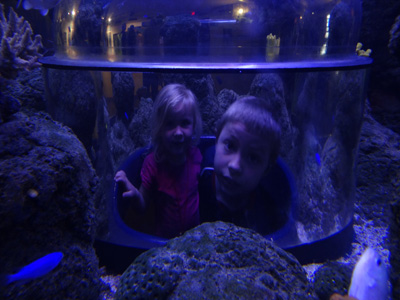 For instance, there are several places were kids can enter and be inside an aquarium. This is Sarah and my nephew, who was visiting from Washington. Naturally, these areas were in high demand so we had to move them along - but they loved looking at us through the water. If there were less people I would have gone in there myself to check out the view!