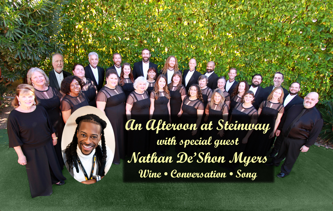 Enjoy an elegant afternoon of wine, conversation, and music in the beautiful Steinway and Sons showroom, with Nathan De'Shon Myers—renowned operatic baritone, commercial vocalist, and Associate Professor of Voice and Choral at ASU—and the Carolyn Eynon Singers. A richly varied musical program is followed by a relaxed musical conversation with Nathan over a glass of wine. Dress for an elegant event surrounded by world-class instruments. Details and tickets at CEsingers.org/events.