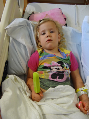 Be prepared to see your child at their worst and you at your most helpless. During the night, Sarah refused all water, juice, ice cream, and other treats that normally she'd jump at the chance to have. I don't think I'll ever forget begging Sarah to eat a small bite of chocolate ice cream at 12:30am and her refusing. This is where the nurses are so important - they can help you by showing you different tricks to try to get them to eat and drink, and they'll bring you almost anything you can think of to help your child. Amy was so sweet and loving - and she treated Jeremiah just as nicely as she treated the rest of us. Sometimes siblings get pushed aside when a child is sick, but Amy made sure Jeremiah didn't feel forgotten or neglected.