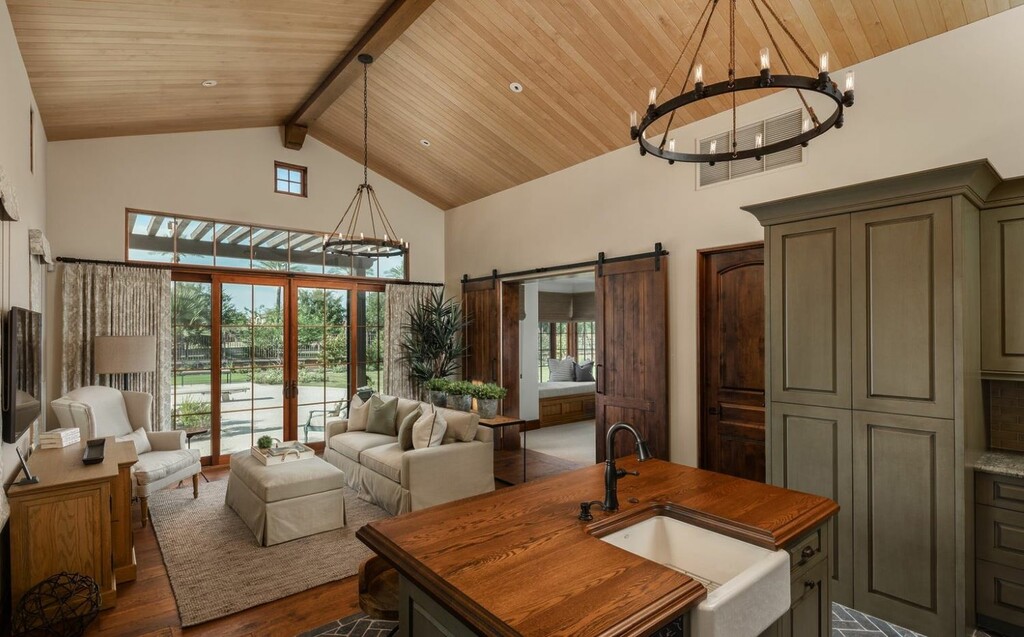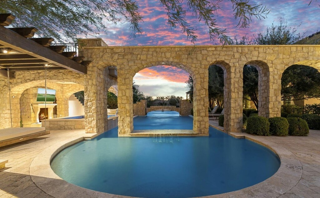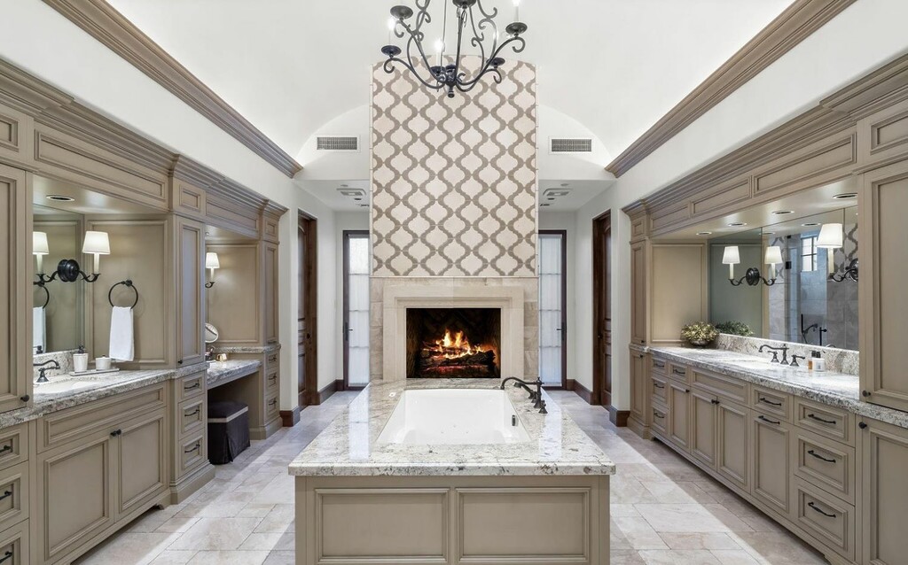 Set on a 1.15-acre double lot, it merges Mediterranean architectural elements with contemporary elegance. Inside, the floor plan includes a private theater, home gym, sport court, wine cellar, six-car garage, and multiple verandas. Details like artisan tilework, hand-hewn beams, and custom stone finishes highlight the level of craftsmanship rarely seen in today’s luxury builds.