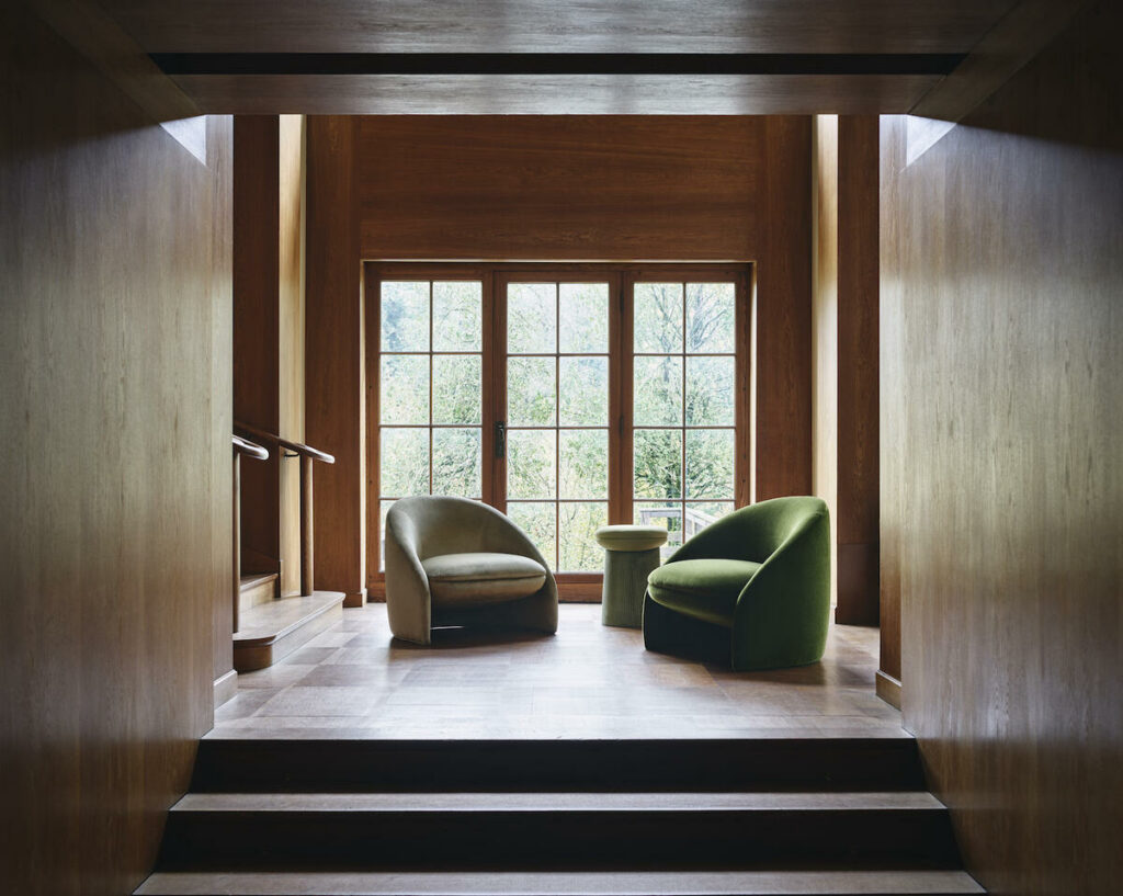 Featuring delicate details and hand-embroidered depictions of sea shells and palm leaves, De Gournay’s striking showroom in Paris transported visitors to a moonlit seafloor and a treetop canopy with its new “Amami Waves” and Étienne’ wallpaper designs. Both designs embellish walls with simple, but intricate patterns and scenes of nature using luxury materials such as silk.