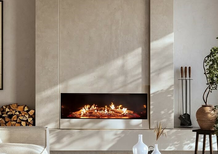 - Seamless Integration: Extend your wall’s porcelain tile or plaster finish into the firebox for a sophisticated, monolithic effect.