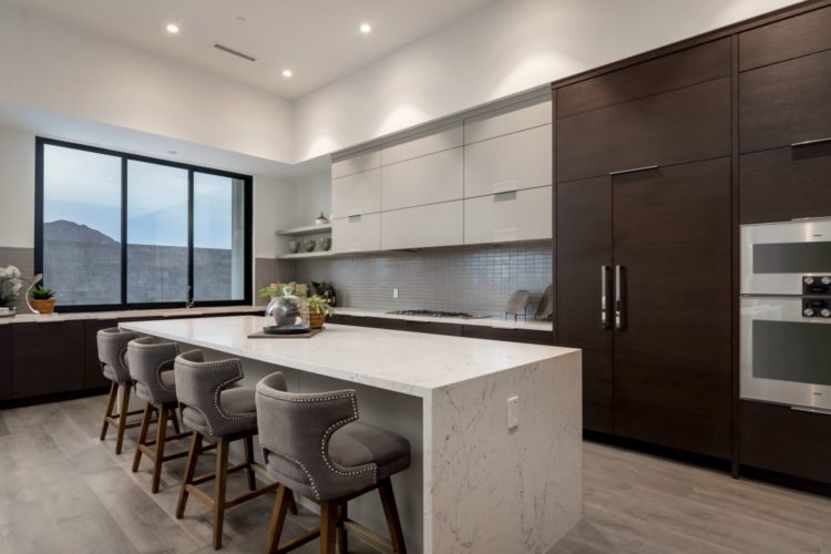This jaw-dropping abode is found in the new Azure by Shea Homes, a luxurious gated community displaying modern and transitional architecture. The interior features Gaggenau appliances, under-counter wine storage, white attica caesar stone counters, stone accents, high-end cabinetry and more, while the custom pool and landscape can be admired from within the home via expansive windows. The floor plan allows the spacious family room to flow to the open kitchen, and the airy bedrooms offer the perfect retreat for r-n-r at the end of the day. Listed by Jarrod Smith, 602.432.4743, jarrod@waltdanley.com. waltdanley.com.