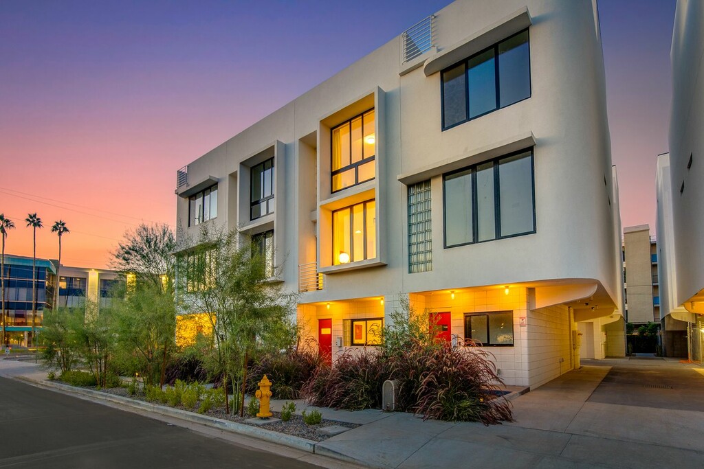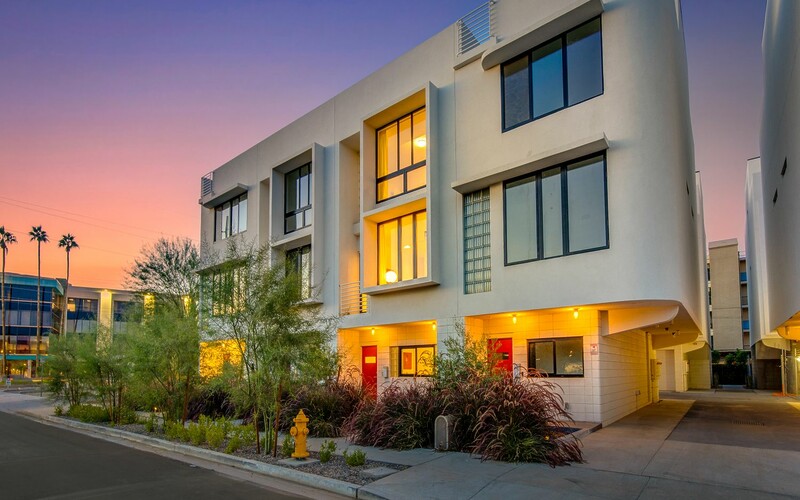 Soleil is built with efficiency in mind. The townhomes feature bright interiors with “brise-soleil,” a design element that helps block harsh sun and reduce heat. Each level has its own independently operated A/C unit, garages are EV-ready, and the landscaping leans into native, desert-friendly plants.