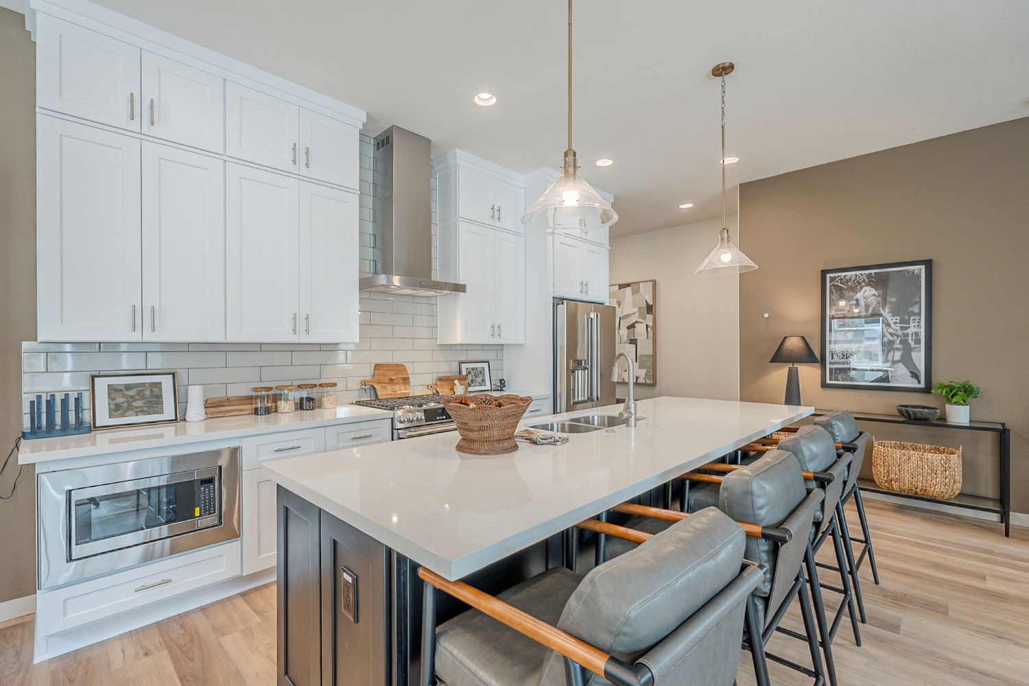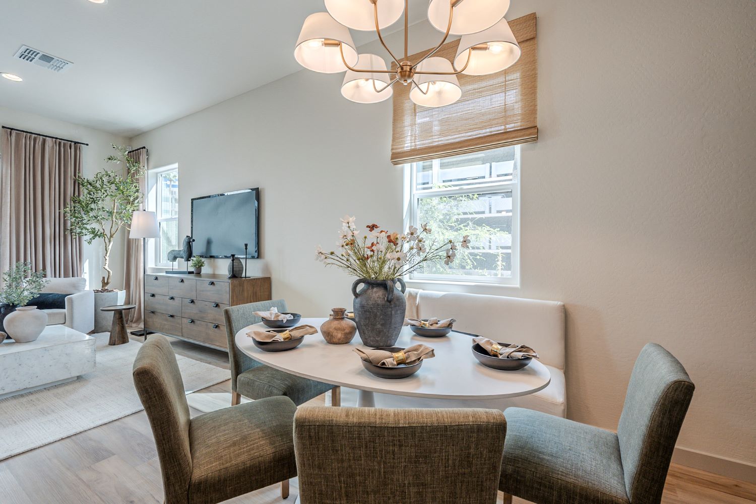 The community offers two distinct home types: the Rooftop Residences, which include expansive rooftop patios overlooking downtown Phoenix, and the Heritage Homes, which feature private yards and front porches inspired by the area’s storied architecture. Every home is outfitted with a gourmet kitchen, quartz countertops, stainless steel appliances, a Ring Doorbell, and a two-car garage pre-wired for EV chargers.