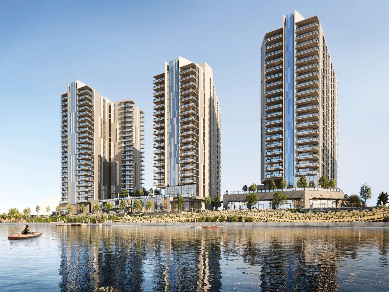 “Whether residents are enjoying nearby shopping, relaxing in outdoor spaces, or watching the sunrise from their balcony, Shorehaven is designed to make everyday living feel exceptional,” said Ashcroft. “From multiple fitness centers, including an open-air terrace and yoga studio, to retreat-inspired pools with private cabanas, lakefront lounges, and coworking spaces, this is where modern luxury meets lakeside calm.”