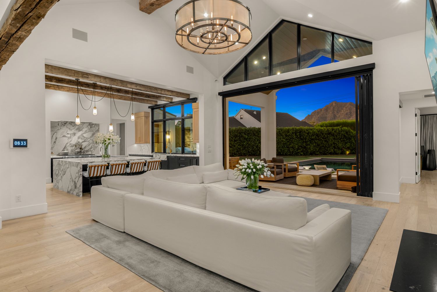 Flooded with natural light and framed by views of Camelback Mountain, this palatial Arcadia estate offers an elevated take on luxury living. Listed at $6.25 million by Compass’ Chris Karas, the Mark Candelaria-designed and Rafterhouse-constructed residence spans 4,659 square feet and showcases warm oak flooring, designer finishes, and meticulous attention to detail throughout.