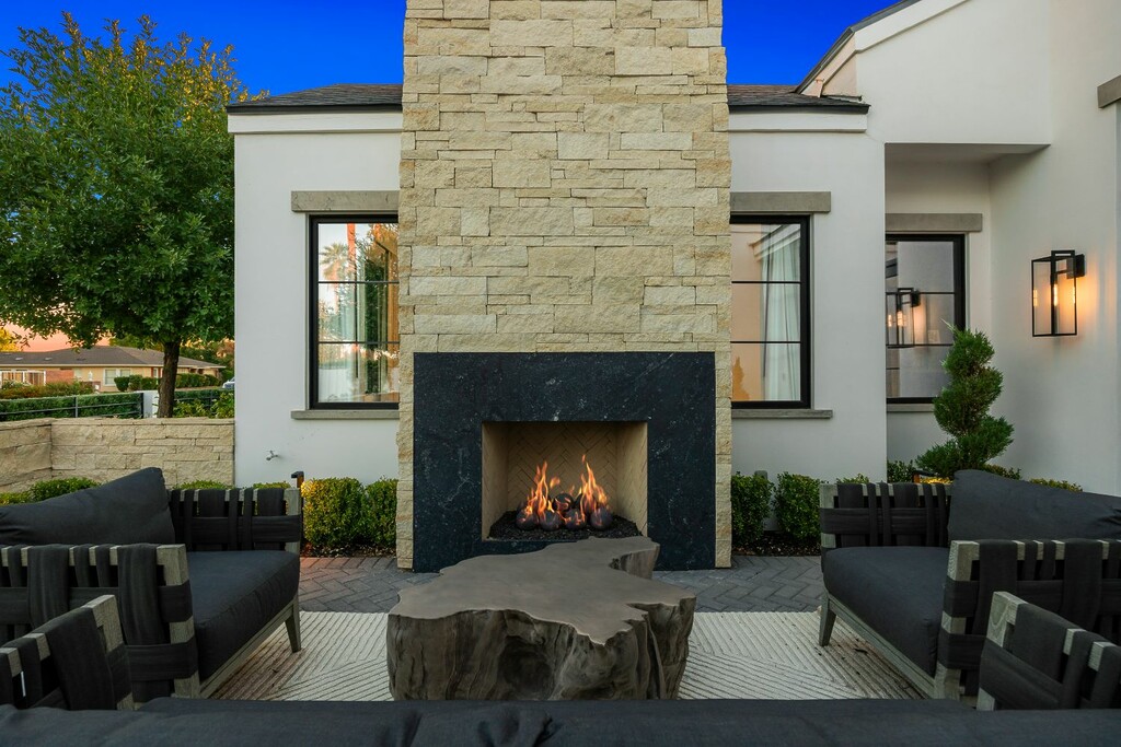 Located on Calle Rosa in Scottsdale, the five-bedroom, five-bath single-family home sits within the coveted Arcadia neighborhood, known for its proximity to top restaurants, boutique retailers, and a wealth of outdoor and cultural amenities. The arrival experience sets the tone, with a front courtyard and fireplace that offer style and a sense of welcome.