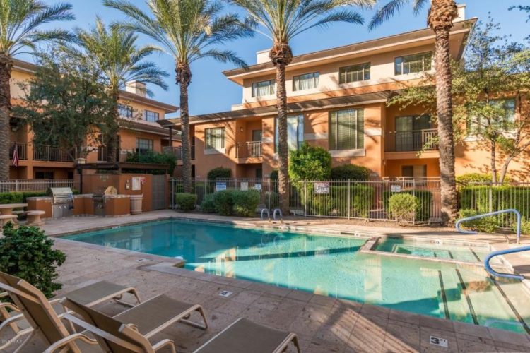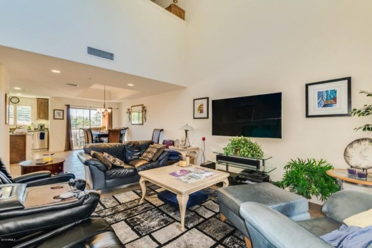 Beautiful contemporary three-level townhouse in the gated community of Sandalo in Scottsdale. This unit provides a cozy feel with stunning features like vaulted ceilings and upgraded kitchen. Patio on first level with second-floor balcony. The first level features a two-car attached garage, laundry room and bedrooms. The second level has a living room and kitchen. Third level has a loft master bedroom bath. Resort-style living with community pool, barbecue, picnic area and biking/walking paths.