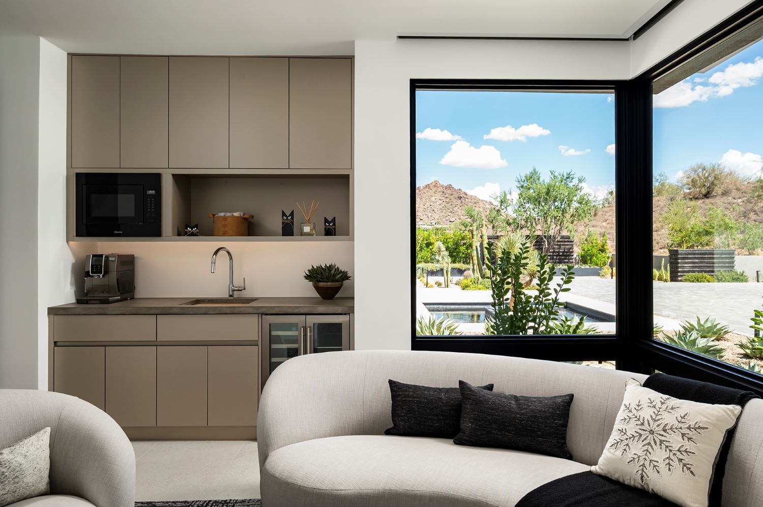 A private lounge just off the dining room creates a cozy space, while motorized telescoping doors invite the natural beauty of Arizona to become part of your daily experience.