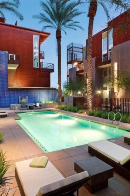 Here is your opportunity to own in Safari Drive across from Fashion Square. Modern architectural condo with high-end designer finishes, soaring 18-ft. ceilings, lots of glass and steel, this is urban living at it’s finest. Great for lock and leave, professional, rental or athlete. Most aggressively priced unit and the only end unit like this available. Highly upgraded with custom Wainscoting, Scavolini kitchen cabinets, floating walnut vanities in baths, Botticino limestone, and Quartz counters. Steps away from BBQ and fire seating area, close to pool and convenient to the canal walking/biking path. Community features dedicated parking, fitness center, two pools and all exterior maintenance included in HOA. Very low utilities costs. Downtown loft look with resort feel in the heart of it all!