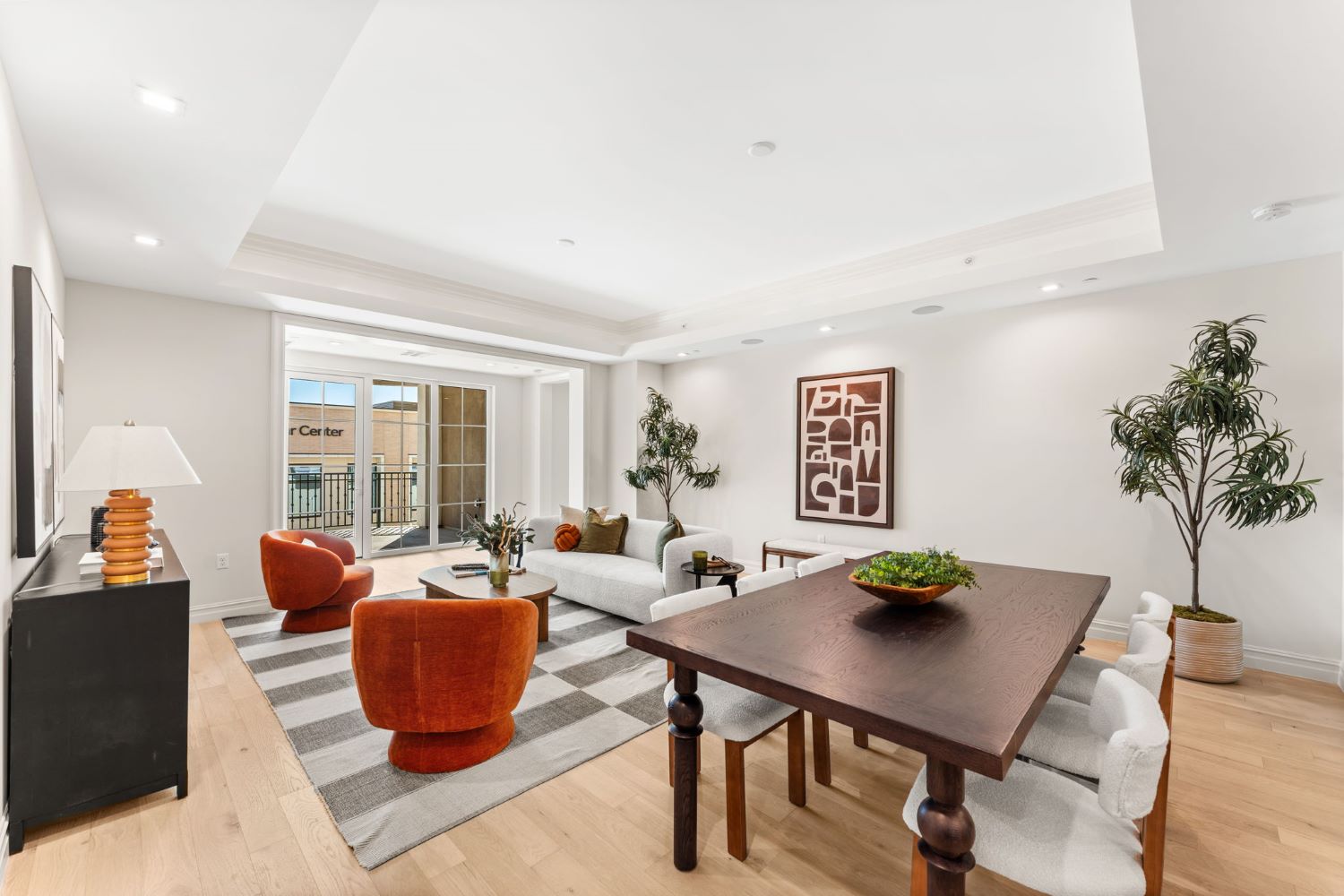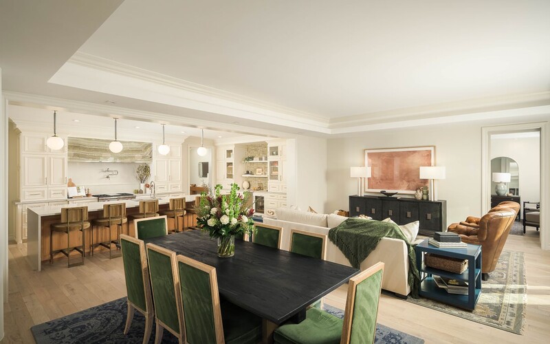 Residents enjoy 24-hour concierge and valet service, EV charging stations and an collection of private spaces reserved for residents and their guests. A chef’s kitchen with an adjacent private dining room sets the stage for gatherings. A wine and whiskey room offers individual storage, while a library lounge and flex fitness studio allow for quiet moments or personal training sessions.