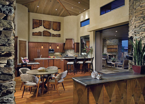 This dual-master home in a North Scottsdale golf community combines complementary textures and warm wood colors to make a retirement-focused abode.