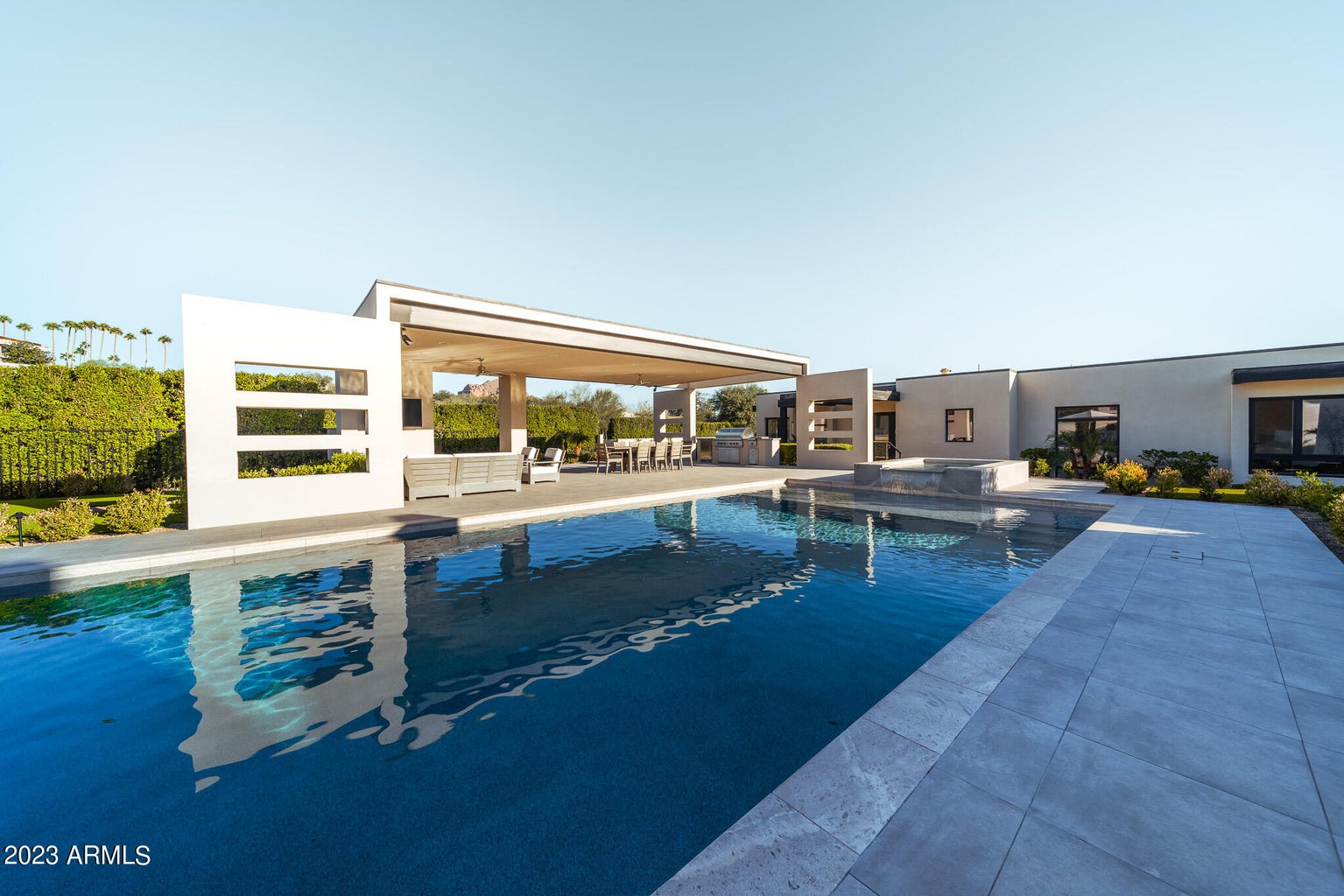 Nestled between Paradise Valley and Arcadia, this extensively remodeled home boasts views of Camelback and The Phoenix Mountain Preserve, three outdoor spaces, in-floor heating, an attached casita, multiple spas, a detached RV garage and separate boat parking.