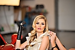 The 2010 Face of Foothills Winner poses in front of a Ferrari for Noir: An Evening of Darkness and Light.