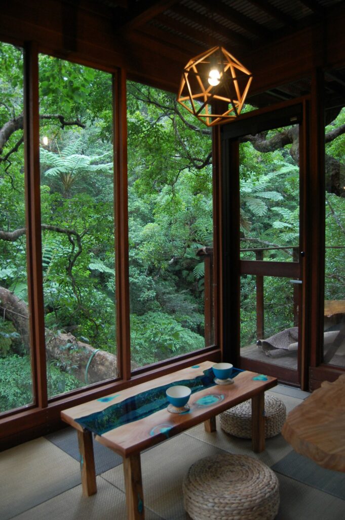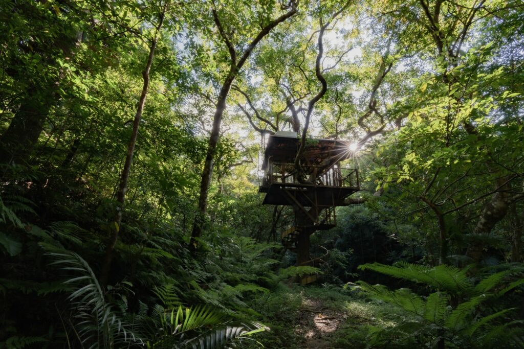Tucked away in a canopy of Japan’s Akagi trees, Treeful Treehouse is a sustainable resort within Okinawa offering multiple accommodations, including the whimsical Spiral Treehouse. Built by hand around the trunk and branches of a real tree for a true treehouse experience, the Spiral Treehouse uses repurposed wood and solar-power. Thoughtful amenities include air conditioning, bathroom facilities, a hammock to enjoy the breeze of the trees by day and the starry sky by night, plus two eye masks and yoga mats for optimal relaxation.