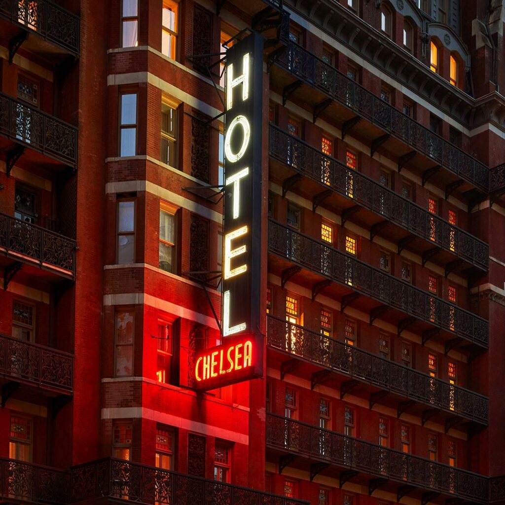 New York’s historic Hotel Chelsea, once home to prominent figures in the art scene, such as Bob Dylan and Andy Warhol, now decorates each of its spaces with art donated by former residents.