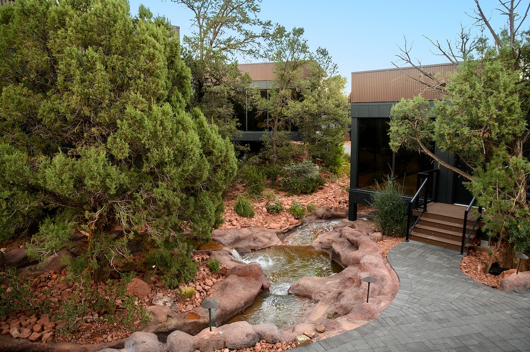 Sustainability is built into nearly every element of the experience. Each Atrium features Eco Bee smart thermostats, energy-efficient LED lighting that complies with Sedona’s Dark Sky standards and floor-to-ceiling low-E glass designed to improve energy efficiency while reflecting the area’s famous red rock scenery. The property’s pool is solar-heated, and all on-site vehicles are fully electric.
