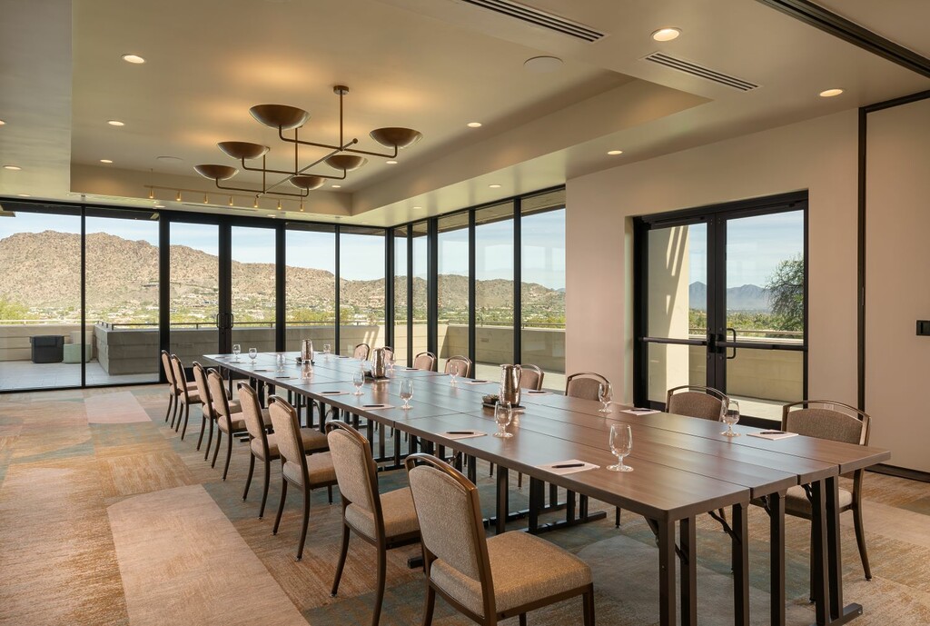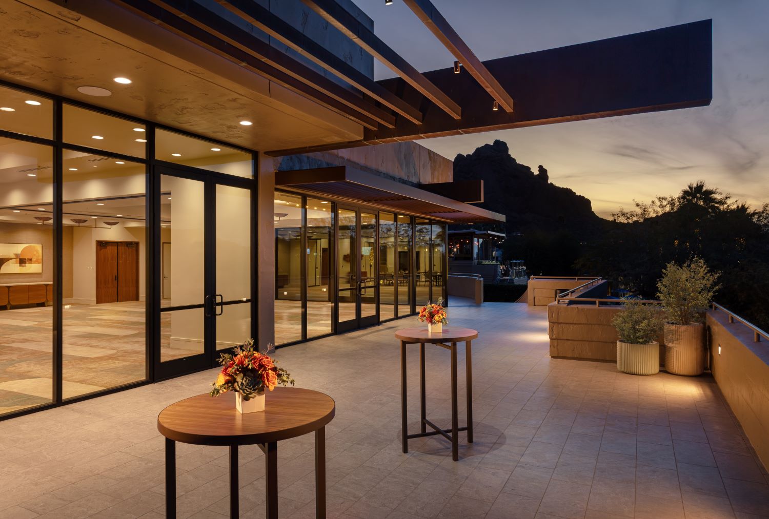 The expansive transformation encompasses 8,000 square feet of indoor and outdoor event space, including the Views Ballroom, Views Terrace, Paradise Views, Lower Lawn, and Cholla meeting room. Each venue has been thoughtfully redesigned to complement the surrounding desert landscape while maximizing flexibility and functionality. Paired with views of Camelback Mountain and the Praying Monk, the renovated spaces create a dramatic yet serene setting for events of every scale.