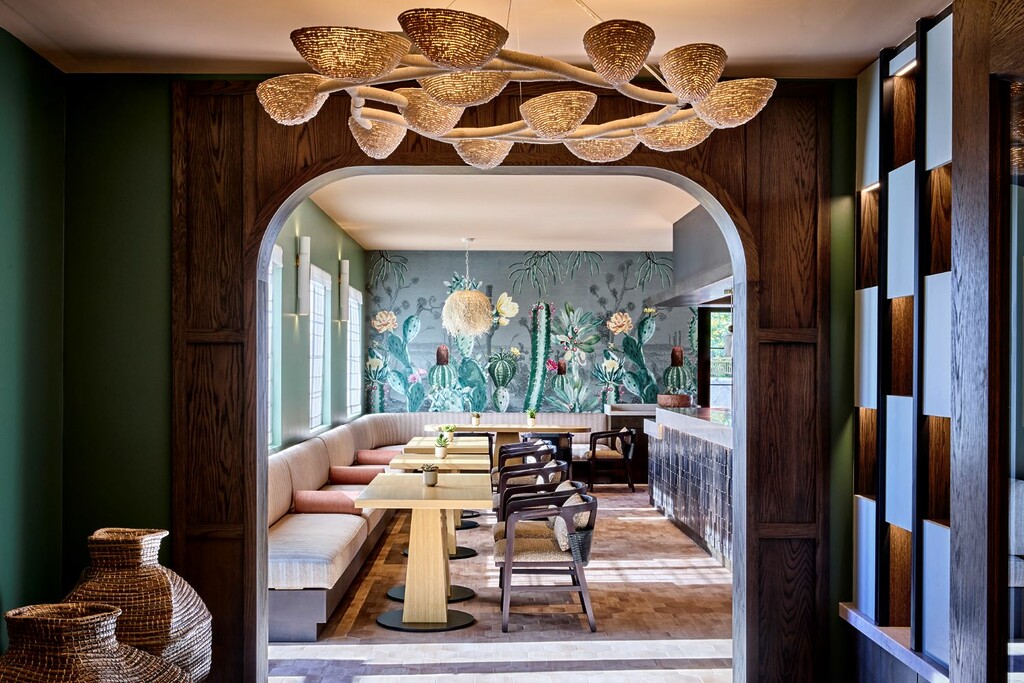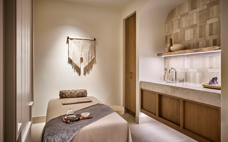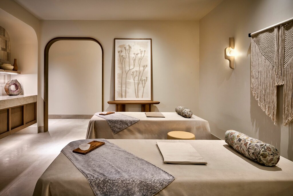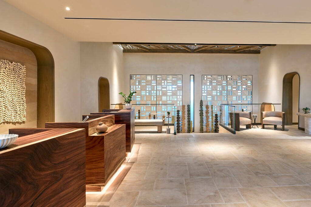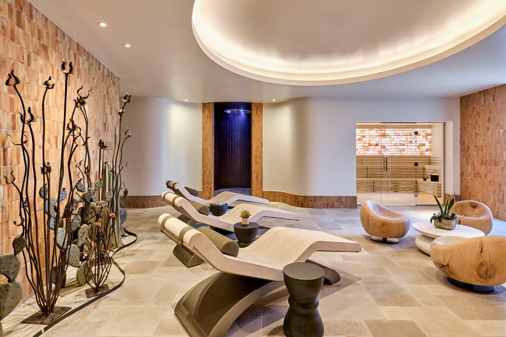 Behind reception, tactile ceramic works by Mexican artist Charabati Bizzarri add depth and craftsmanship, reinforcing the spa’s connection to earth-driven artistry. Custom furnishings and lighting continue the natural narrative, including dramatic S-shaped chandeliers crafted from agave fiber, while a bespoke music program and signature aromatics set a multisensory tone from the moment guests arrive.