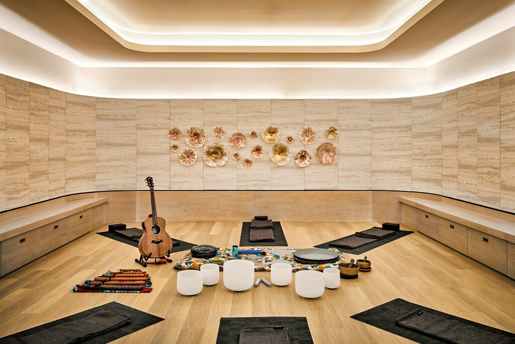 Nearby, The Sanctuary offers a serene co-ed relaxation space, while the Stillness Lounge takes sensory restoration even further with Mind-Sync Harmonic Wellness Loungers, weighted blankets, eye masks, and noise-canceling headphones designed to reduce stress and improve sleep.