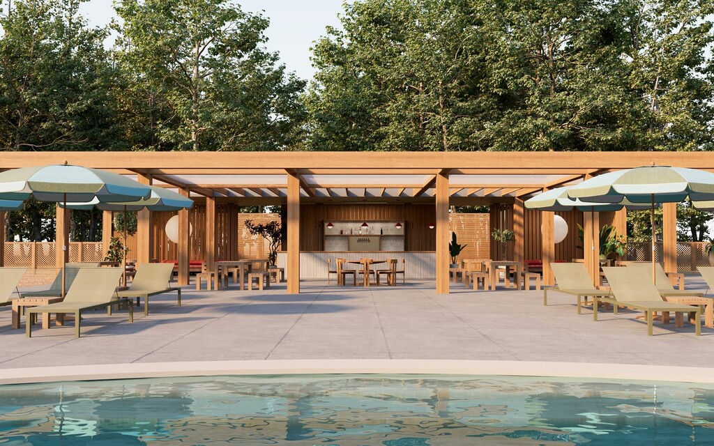 For those looking for a daytime escape, the swim club offers day-use access and memberships for visitors looking to unwind poolside. Passes start at $32 and include a portable lawn chair, with optional upgrades for chaise lounges and poolside cabanas.