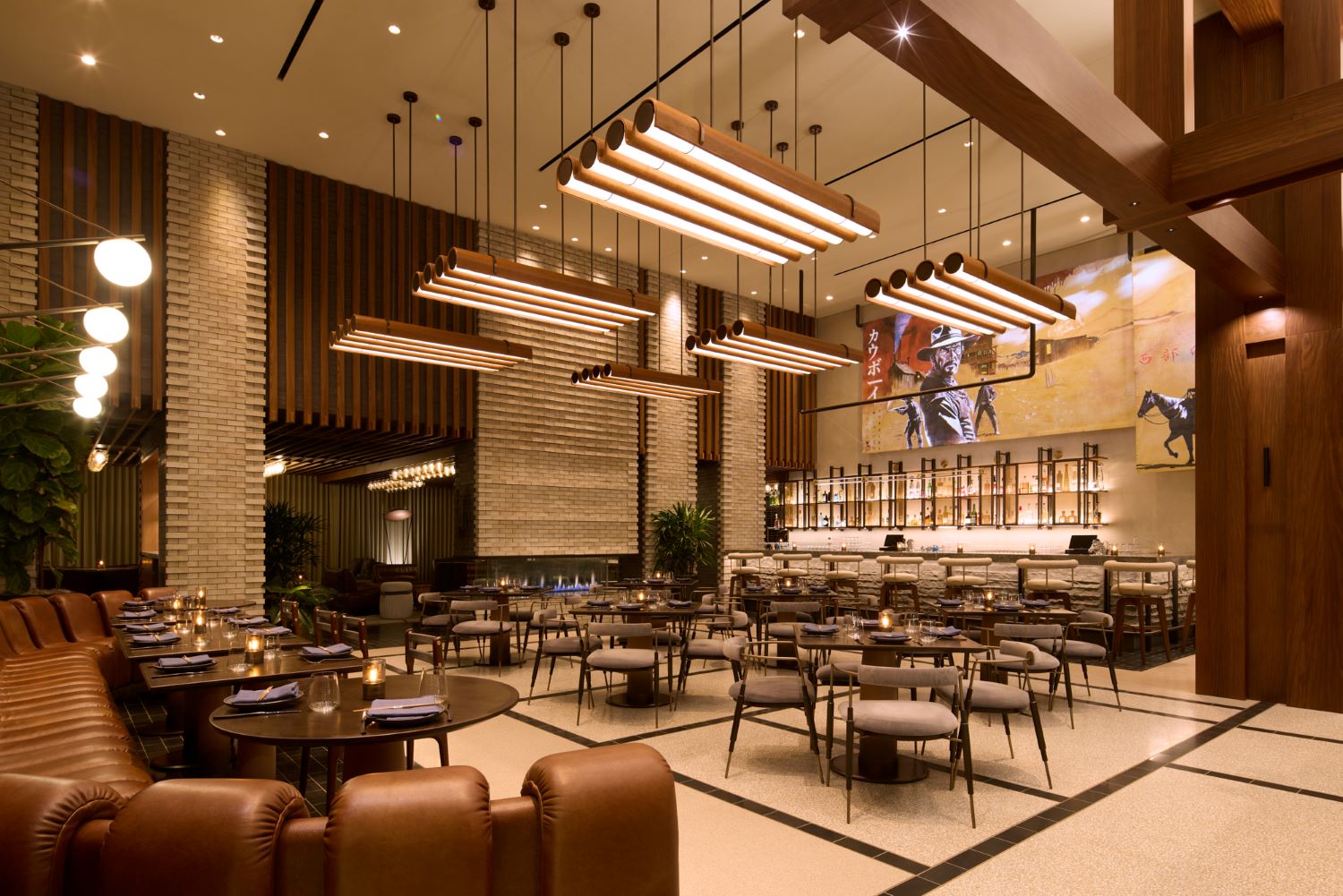 As day turns to dusk, Kauboi takes the stage: a robata grill and sushi bar that fuses Japanese tradition with desert-edge creativity, serving up bold flavors in a refined yet lively setting.