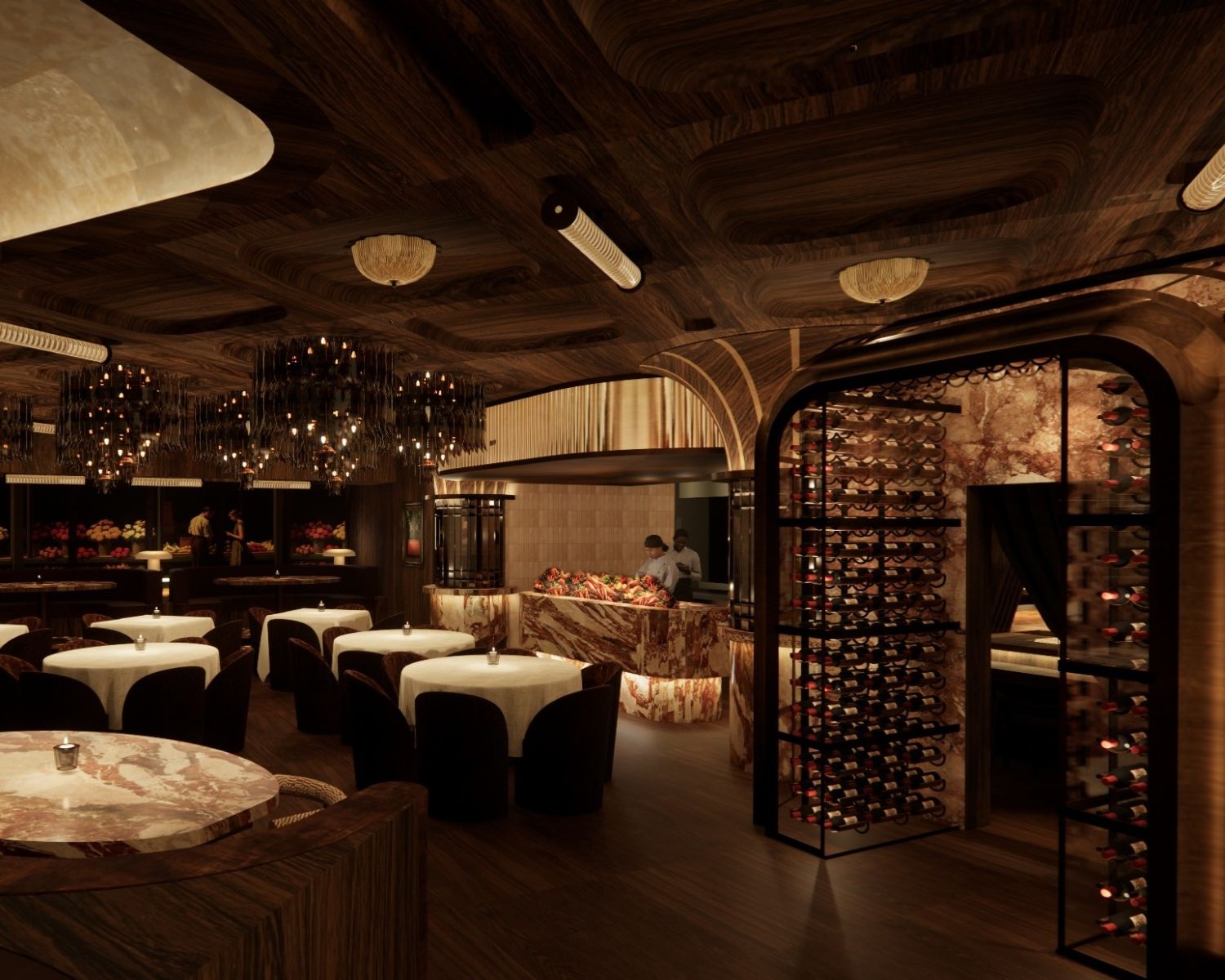 The restaurant’s 10,000-square-foot footprint reflects that ambition, seating 300+ guests across a sweeping dining room, a dramatic bar, and private rooms ideal for celebrations or for sealing a deal with steak and a martini. Before shaping the menu, the team spent months on the road, venturing from major cities to cattle country, meeting ranchers, touring dry-age facilities, and studying the labor and lineage behind great beef.