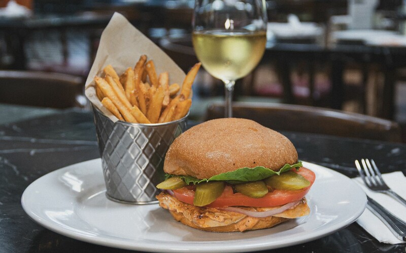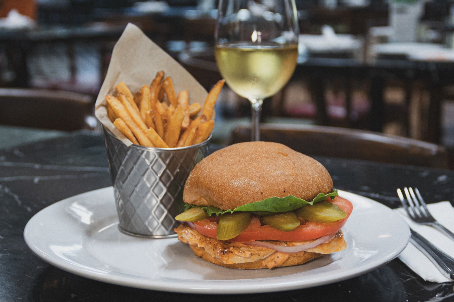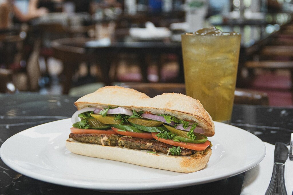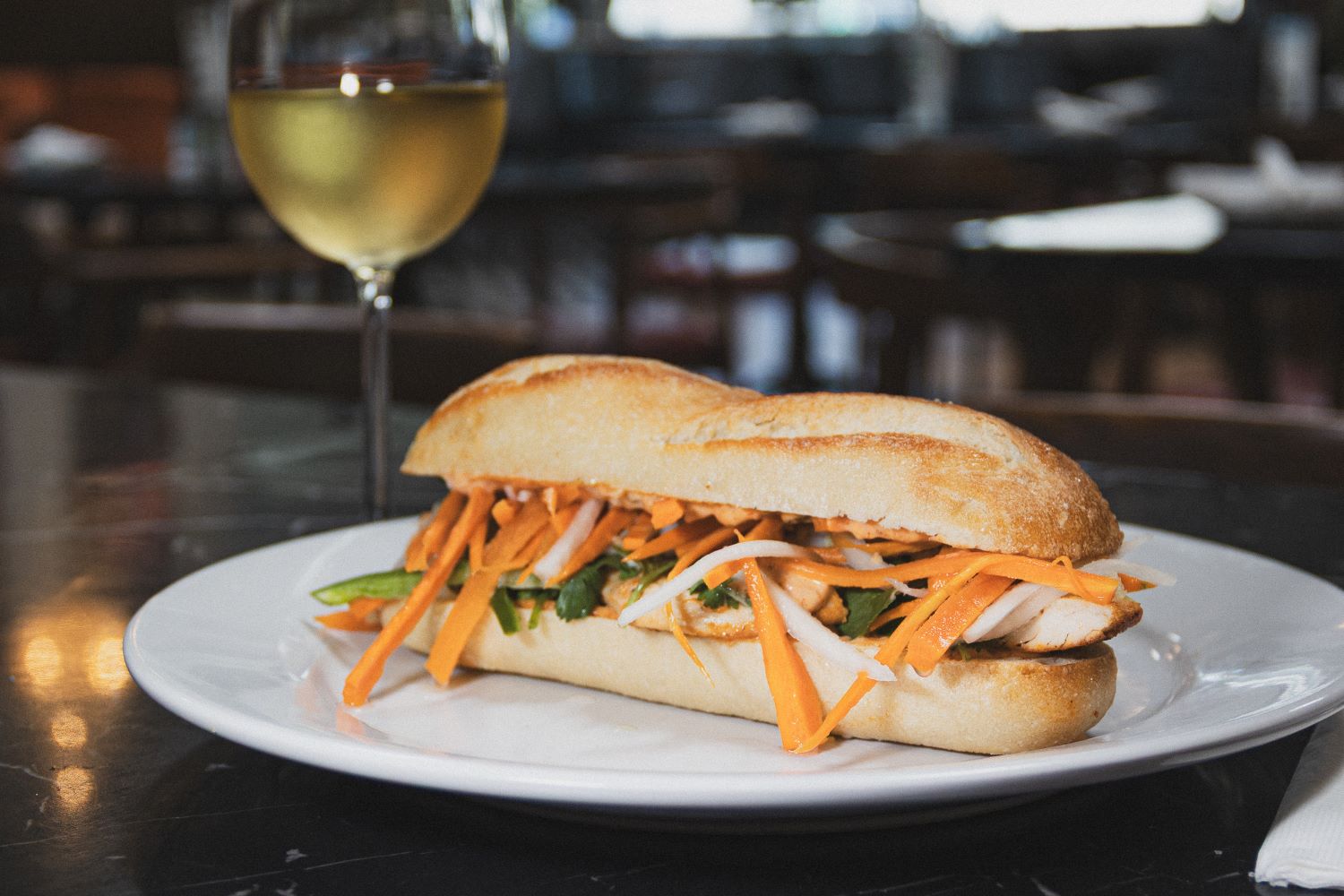 Global sandwich creations also make a strong showing. The chicken bánh-mi takes inspiration from Vietnamese street food, layering grilled marinated chicken with spicy umami mayo, jalapeños, pickled carrots and daikon, fresh cilantro, and mint on a toasted baguette.