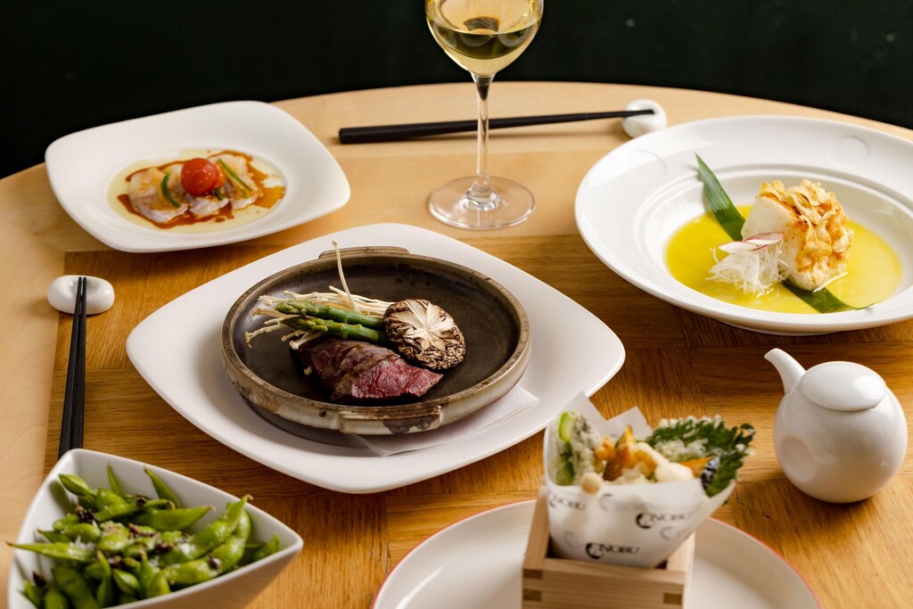 After a Sashimi Salad, entrées such as Black Cod Miso and Beef Tenderloin with Wasabi Pepper carry the meal forward before concluding with an elegant Whiskey Cappuccino dessert. A separate omakase menu ensures guests can explore a different expression of the season.