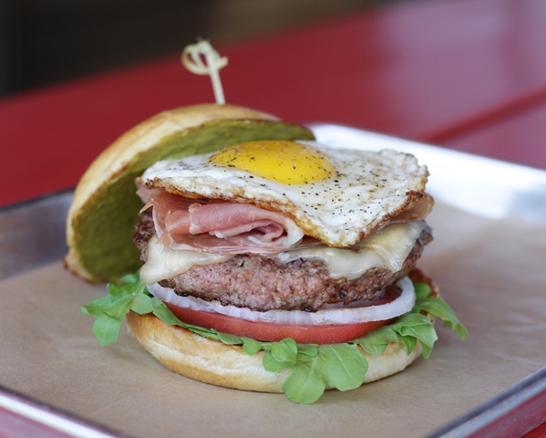 The Green Eggs & Ham Burger Special (pictured) is available now until August 23 at Hopdoddy Burger Bar. The burger features a beef patty, fried egg, salsa verde, sliced prosciutto, manchego cheese, onion, tomato, arugula salad and egg bun.