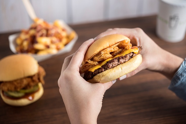 Shake Shack announced a limited-edition lineup of BBQ items, which became available earlier this week, for a limited time at all three Valley locations at Scottsdale Fashion Square, Uptown Plaza and Kierland Commons in Phoenix. Items include the BBQ ShackMeister Burger (pictured), an all-natural Angus beef cheeseburger topped with crispy ShackMeisterAle-marinated shallots and Shack BBQ sauce; the BBQ Chick’n Shack, a crispy, all-natural and antibiotic-free chicken breast with Shack BBQ sauce and pickles; and the BBQ Bacon Cheese Fries. crinkle-cut fries topped with all-natural smoked Niman Ranch bacon, Shack BBQ Sauce and cheese sauce. Seasonal shakes are also currently available.