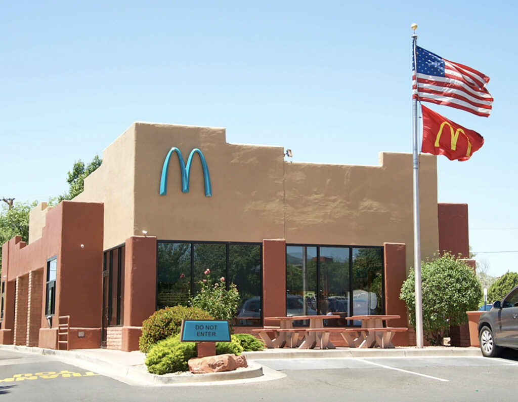 In Sedona, you’ll find the only McDonald’s with a turquoise logo. This Arizona location also features a southwest flair with earthy tones of red and tan– all to blend in with the stunning red rocks and surrounding Sonora Desert.
