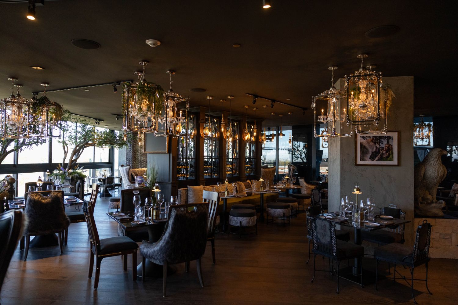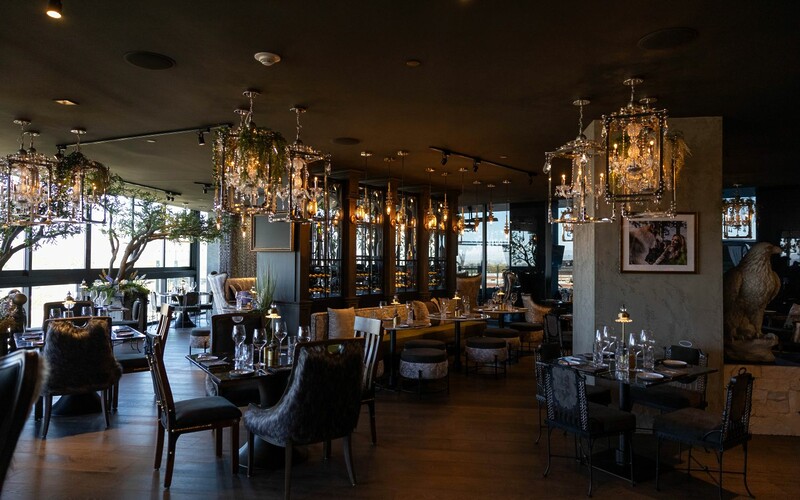Located on the seventh floor, the restaurant delivers a fully immersive experience. Designed by Vanderpump Alain in collaboration with Nick Alain, the space reflects the spirit of the wolf: bold, intelligent and playful through dramatic lighting, layered textures and custom furnishings. A central bar anchors the room, while the adjoining veranda offers an open-air extension where guests can enjoy cocktails and desert views.