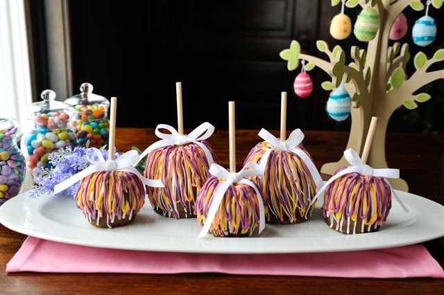 Chocolate-Caramel Apples We are big fans of Sweet Mary’s delectable caramel apples–for any holiday. For Easter, though, these Fuji favorites are getting a pastel makeover, being drizzled in pretty purple, orange and yellow. Sweet Mary’s is even offering kid-friendly mini apples this holiday. $17. www.sweet-marys.com.