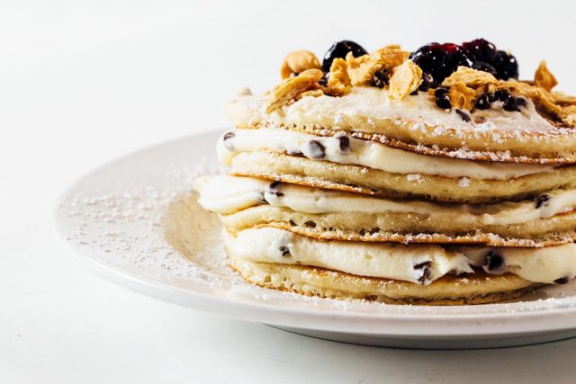 The mom in your life deserves more than soggy bacon or cold cereal this Mother’s Day. Prep these cannoli pancakes from Hash Kitchen to show her how sweet on her you really are.