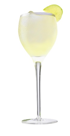 Shake and strain into a martini glass rimmed in sugar. Garnish with a lemon wheel. Note: The cocktail could also be served on the rocks in a wine glass.