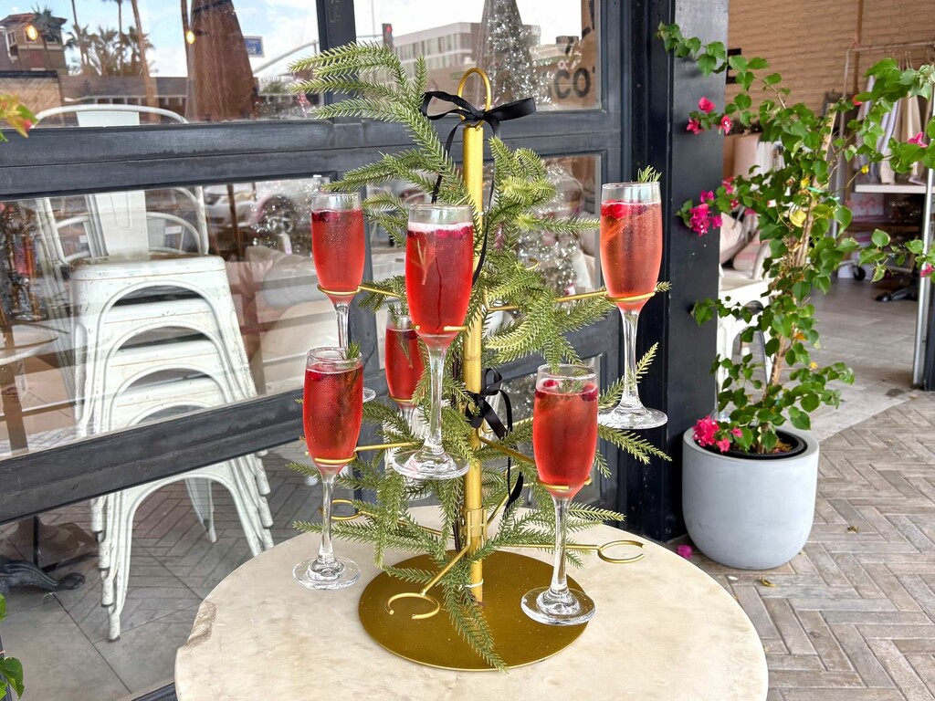 And for groups ready to celebrate in full holiday style, the Mistletoe Mimosa Tree delivers a tower of six champagne flutes filled with the seasonal mimosa – ideal for sharing and even better for photos.
