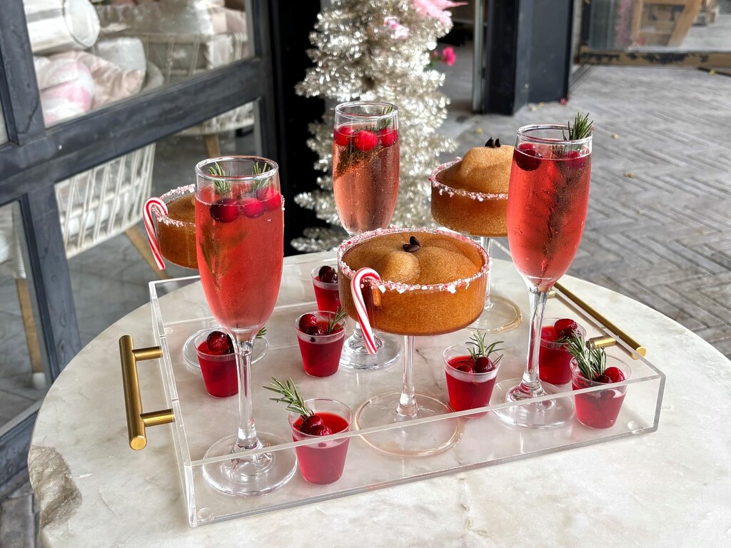 The menu features creative concoctions that are as fun as they are flavorful. Guests can kick things off with the Naughty List Jello Shot, a cherry-infused treat made with wine-based vodka and topped with sugared cranberries and a rosemary sprig.