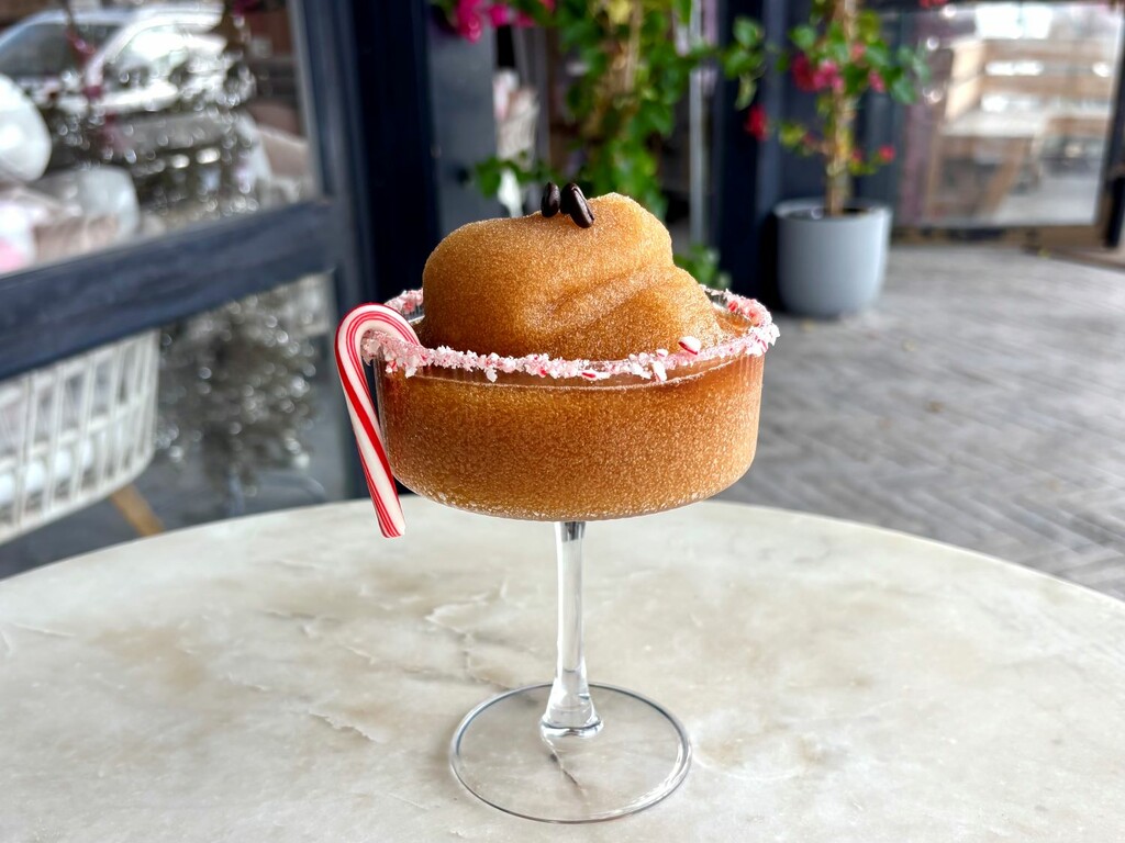 For something bubbly and refreshing, the Mistletoe Mimosa pairs prosecco with cranberry juice and a seasonal garnish. Coffee lovers can lean into winter indulgence with the Frozen Espresso Martini, complete with a candy cane rim and an espresso bean finish. The Frosted Fizz offers prosecco poured over a festive cranberry-and-rosemary ice cube.