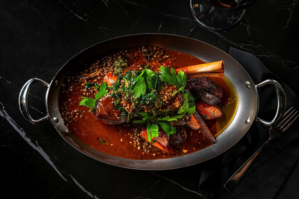 Other highlights include wagyu beef cheek tortellini ($38) with horseradish agliata, crispy shallot, black truffle jus, and chive; bluefin tuna ($32) with Asian pear, stracciatella, Calabrian chili crisp, and pistachio gremolata; and Colorado lamb shank ($48), complemented by coffee-roasted carrots, porcini-braised lentils, sage salsa verde, and crispy garlic.