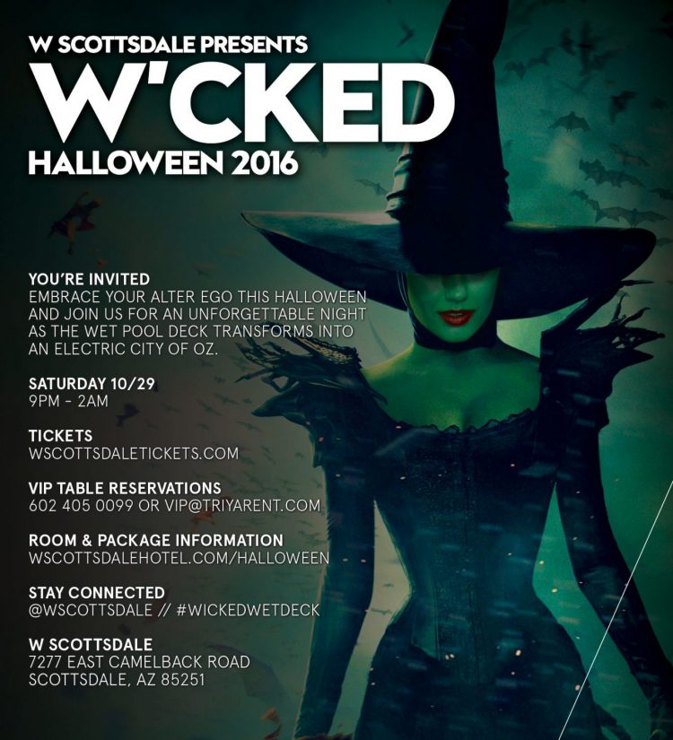 W’CKED Halloween Party at W Scottsdale. Enjoy the electric City of Oz at this AAA Four Diamond hotel’s WET Pool Deck. At 9 p.m. Saturday, join W Scottsdale for an unforgettable night. Tickets are $40 per person. wscottsdaletickets.com