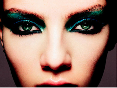 For a day or night look that really brings out green eyes, try a copper hue. Apply to both lids and the bottom lash line with wet shadow to for high intensity.Try a rich gel eyeliner in the pretty-penny shade, like this waterproof version by Lancôme. To glam things up for night, stand out and sparkle with shades of purple. To accent with a touch of playful color, wet an eyeliner brush and apply a deeply pigmented shade like L’Oréal Infallible Eye Shadow in Perpetual Purple to the top and bottom lash lines only.