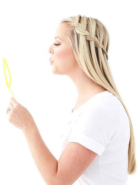 How to achieve this look: Braid your hair starting from the side of your head, dropping alternating braid strands to give you a waterfall look. Once the braid is completed, use a wide-barrel (1 in.) curling iron to give yourself loose, beachy waves.