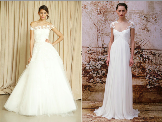 Cap sleeves made an eloquent debut down the runways of designers, like Oscar de la Renta (L) and Monique Lhuillier (R).