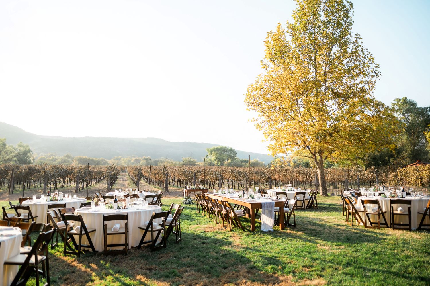 Candlelight has become a defining visual of the modern ranch wedding. Minimalist tablescapes built around layers of soft glow and restrained floral arrangements create warmth without overwhelming the senses. The effect is romantic but grounded, enhancing the vineyard’s organic beauty rather than competing with it.